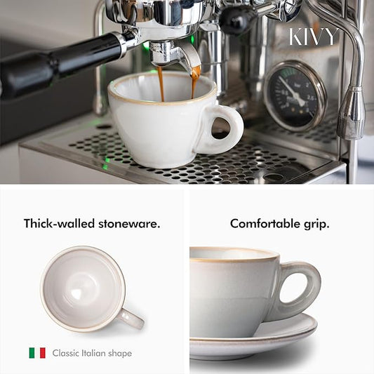 KIVY Cappuccino cups [4x 8oz] - Thick-walled stoneware cappuccino cup set for latte art - Latte mugs - Latte cup set - Small coffee cups - Latte art cup - Ceramic latte cup and saucer set of 4