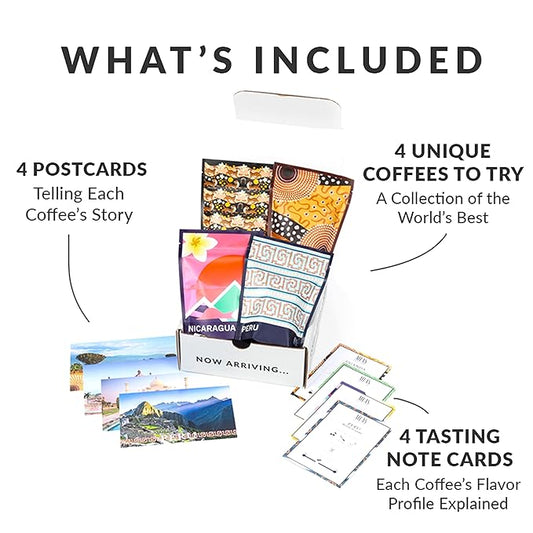 Atlas Coffee Club World of Coffee Set, Gourmet Coffee Gift Sampler, 4-Pack Variety Box of the World’s Best Single Origin Coffees, Whole Bean