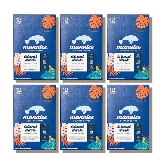 Manatee Gourmet Coffee Single Serve Pods for Keurig 2.0 K Cup Brewers Island Dark Roast, 12 Count, Pack of 6