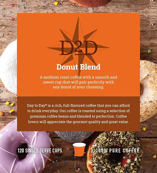 Day To Day 120-Count Donut Blend, Medium Roast Single Serve Coffee Pods for K-Cup Keurig Brewers