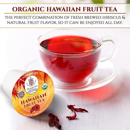 Teavity Organic Hibiscus Tea Pods with Peach, Mango, & Passionfruit - Naturally Decaf Hawaiian Fruit Tea (36 Pods)