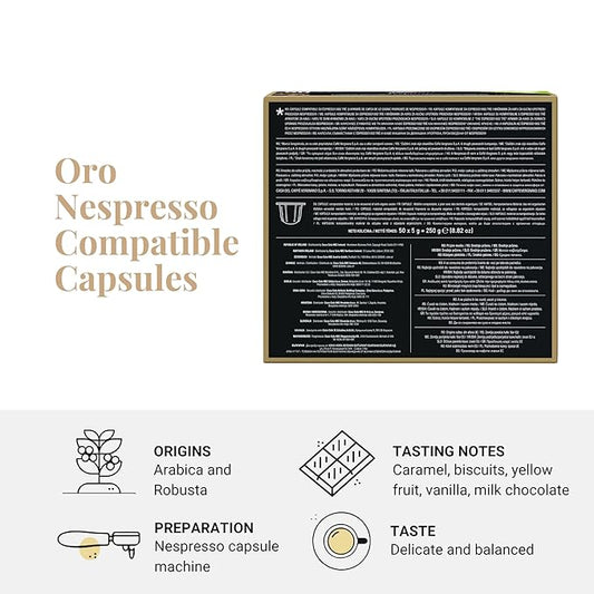 Caffe' Vergnano 1882 Medium Roast Arabica Robusta Espresso Original Line Machine Compatible Capsules, Single-Serve Italian Coffee for Nespresso Machines, Intensity 4/10, Oro, 50 Ct