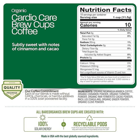 Cardio Care Organic Coffee Pods – Probiotic Coffee with Cacao, Ginger, Turmeric & Cinnamon – Healthy Superfood, Mold Free, Vegan, Gluten Free, everyday dose coffee - 10 Recyclable Single Serve K-Cups
