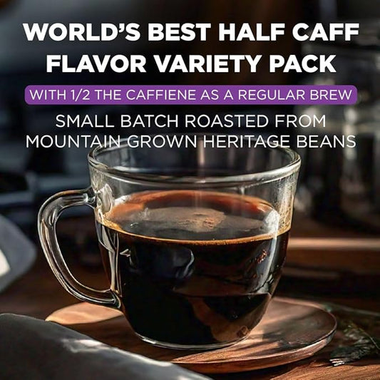 Maud's Half Caff Coffee Pods Variety Pack, 48 ct, 6 Assorted Flavors, Medium Roast Coffee in Recyclable Single Serve Pods – 100% Arabica Coffee, Compatible with Keurig K Cups Maker