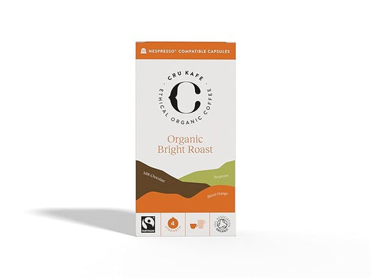 Cru Kafe Bright Roast USDA Organic Espresso Coffee Capsules (50 Pods) Fairtrade Coffee Pods Compatible with Nespresso Original Line and Pixie Machines