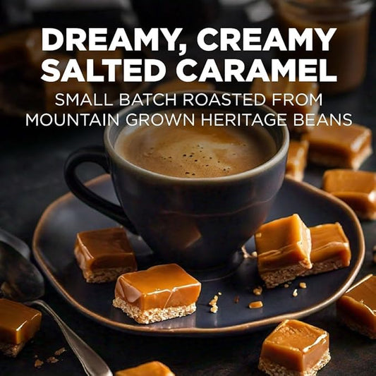 Maud's Salted Caramel Flavored Coffee Pods, 50ct, Medium Roast Flavored Coffee in Recyclable Single Serve Pods – 100% Arabica Beans, Compatible with Keurig K Cups Maker