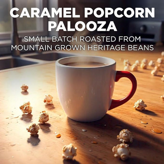 Maud's Caramel Popcorn Flavored Coffee Pods, 18 ct, Medium Roast Flavored Coffee in Recyclable Single Serve Pods – 100% Arabica Beans, Compatible with Keurig K Cups Maker