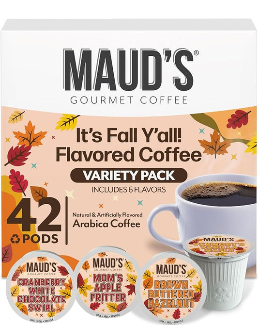 Maud's Fall Flavored Coffee Pods Variety Pack, 42ct, 6 Assorted Flavors, Medium Roast Coffee in Recyclable Single Serve Pods – 100% Arabica Beans, Compatible with Keurig K Cups Maker
