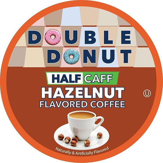 Double Donut Coffee Hazelnut Half Caff Coffee Pods, Single Serve Flavored Half Caffeine Coffee Pods For Keurig K Cup Brewers, Medium Roast, 20 Count (Pack of 2)