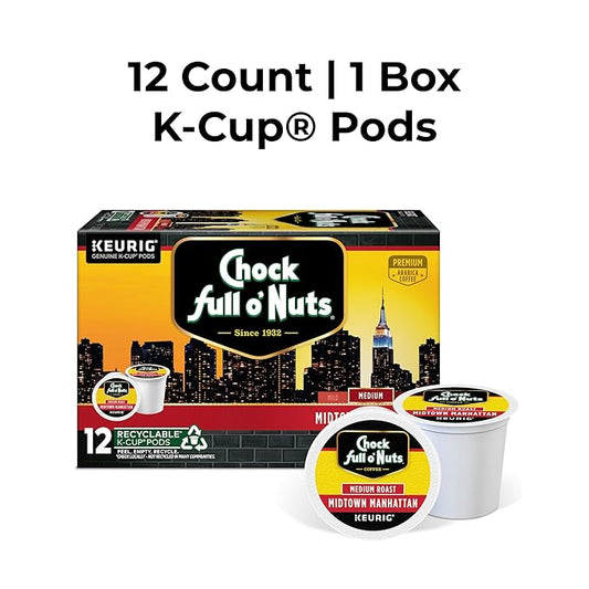 Chock full o’Nuts Midtown Manhattan Keurig K-Cup Pods for Keurig Brewers – Premium Arabica, Medium Roast – Single Serve – 1 Pack of 12 K-Cup Pods