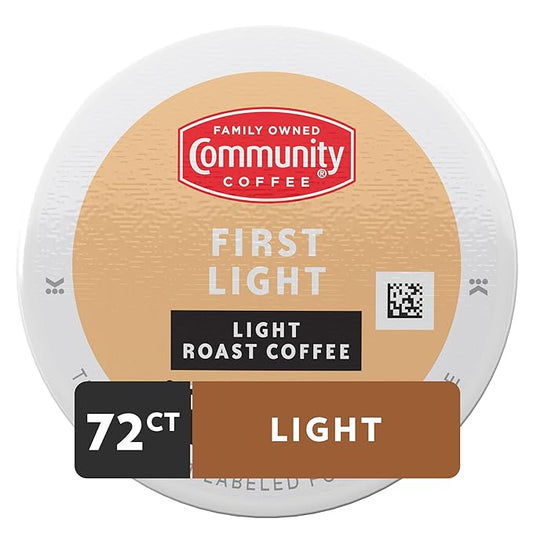 Community Coffee First Light, 72 Keurig Coffee Pods, Light Roast, Compatible with all K-Cup Brewers, 12 Count (Pack of 6)
