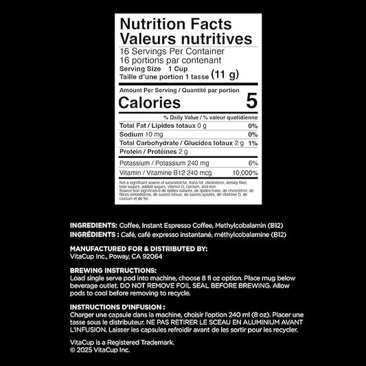 VitaCup Extra Shot Strong Coffee Pods, Bold & Intense Dark Roast w/Espresso Shot, High Caffeine, Vitamin B12, Antioxidants, Recyclable Single Serve Pod Compatible w/Keurig K-Cup Brewers, 16ct