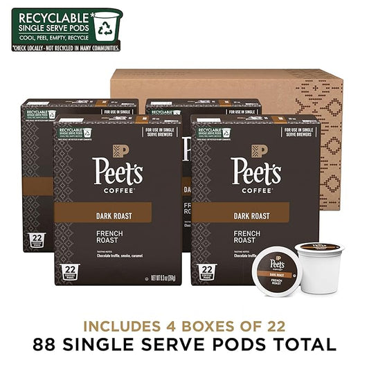 Peet's Coffee, Dark Roast Single Serve Coffee Pods - French Roast 88 Count (4 Boxes of 22 Pods)