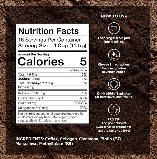 VitaCup Beauty Collagen Coffee Pods for Hair, Skin & Nails, with Biotin & Folate, Medium Dark Roast, Keto Friendly, Recyclable Single Serve Pod Compatible with Keurig K-Cup Brewers,64 Ct