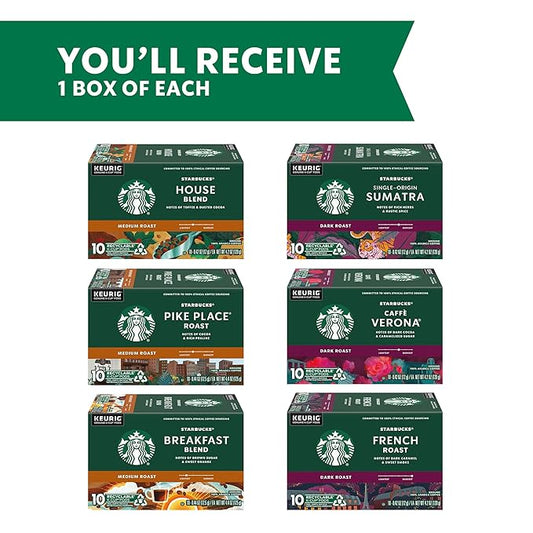 Starbucks K-Cup Coffee Pods, Medium And Dark Roast Coffee Variety Pack for Keurig Brewers, 100% Arabica, 6 Boxes (60 Pods Total)