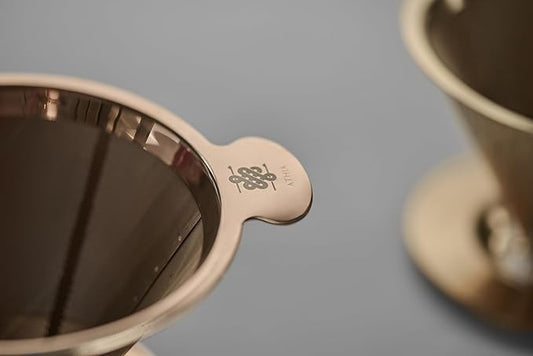 ATHIA Golden Stainless Steel Reusable Coffee Filter, Pour Over Cone Dripper with Fine Mesh, Paperless & Eco-Friendly Design, Fits Most Mugs, Carafes & Coffee makers (Golden, Standard)