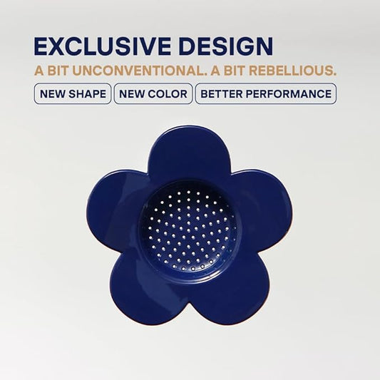 [Holiday Gift] Vietnamese Phin Filter, Plastic Reusable Pour Over Coffee Dripper, Single Cup Coffee Filter with Flower Design for Manual Brewing, Gift for Christmas Thankgiving (Navy)