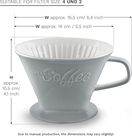 Creano XXL Porcelain Coffee Dripper Stone Grey - Ceramic Cone Brewer - Pour Over Coffee Maker - Filter Size 4 - huge and heavy quality 800gr/28oz - 6 Colours availeble