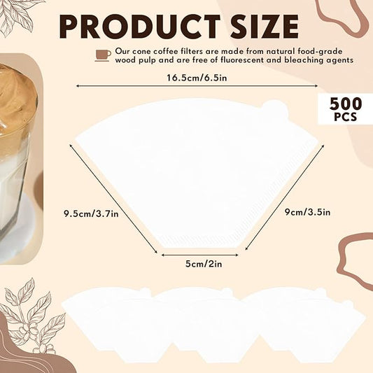 Skylety 500 Count #2 Cone Coffee Filter, Coffee Filters 2 Cone Pour Over Filters Natural Paper Unbleached Disposable Coffee Filters for Coffee Dripper and Drip Coffee Maker