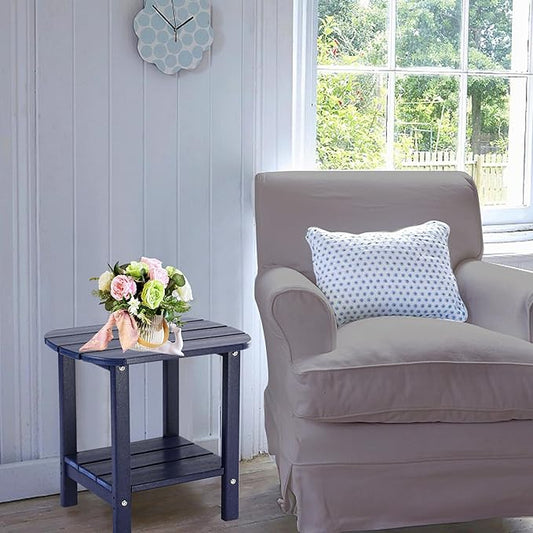 LZRS Double Adirondack Side Table, Outdoor Side Tables, End Tables for Patio, Backyard,Pool, Indoor Companion, Easy Maintenance & Weather Resistant (Navy Blue)