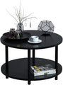 Small Round Coffee Table with Open Storage for Small Space, 23.5" Black 2-Tier Wooden Center Table for Living Room, Metal Legs, Easy to Assemble