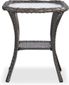 HUMMUH Patio Wicker Side Table Outdoor, Rattan End Table Glass Top Coffee Table with Storage Grey