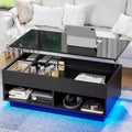 HOMMPA 40" Modern LED Coffee Table with Storage for Living Room, Lift Top Coffee Table with 2 Shelves, High Glossy Wooden Dining Table, Multifunctional Furniture for Bedroom Home Office, Black