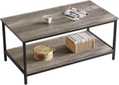SAYGOER 2-Tier Coffee Table for Living Room Farmhouse Style Center Table with Storage Shelf Rectangle Wood Table for Large or Small Spaces Apartment Home Office, Easy Assembly Gray Wash