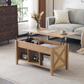 - 【Updated Design】Our multifunctional coffee table now features a oak lift top surface with a rattan decor frame, accompanied by a cross-sided farmhouse style design. The hydraulic lifters, pre-assembled for your convenience, replace the traditional spring and metal bracket mechanism. To ensure a smooth and sleek finish, PVC covers have been provided to hide all the screw holes.