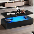 Spurgehom Contemporary Coffee Tables for Living Room, LED Coffee Table with Rounded Corner in 16 Colors, High Gloss 2 Tiers Table with Hidden Power Supply