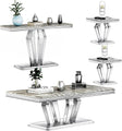 Load image into Gallery viewer, 4-Piece Coffee Table Set, Gray and Silver Living Room Tables with 4 Geometric Bases, 1 Coffee Table + 2 End Table + 1 Console Table for Home Office