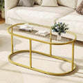 Coffee Table Gold Glass Coffee Tables for Living Room, Oval Table Center Table with Sturdy Metal Frame,Modern Tempered Glass Accent Tables for Bedroom Home Office