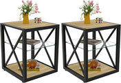 - Modern Industrial Style - End table set of 2 unique design with clear glass shelf and woodgrain board top, bringing a rustic feel to your indoor space.