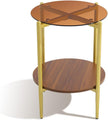 Small Round Coffee Tables for Living Room, Mid Century Side Table with Brown Glass Top, Solid Brown Storage Shelf and Sturable Gold Legs for Small Space, Office, Department