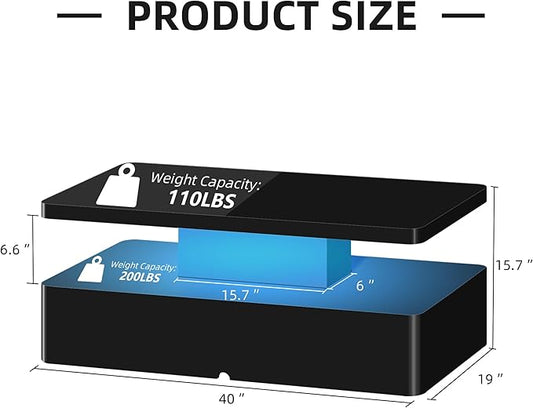 Spurgehom Contemporary Coffee Tables for Living Room, LED Coffee Table with Rounded Corner in 16 Colors, High Gloss 2 Tiers Table with Hidden Power Supply