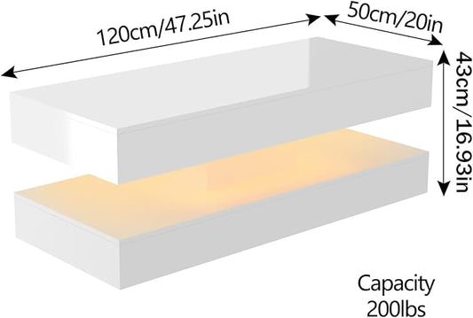 Uspeedy 47.3in Large High Glossy LED Coffee Table with 2 Storage Drawers,Black/White Modern Coffee Tables for Living Room,Living Room Tables,APP LED Lights (White)