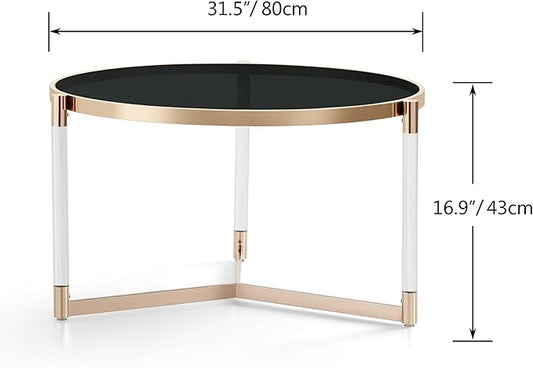AGV LIGHTING 202303GL-BK Glass Coffee Table, Modern Design, Single Layer GlassTop, Perfect for Living Space, D31.5 x H17, Black Glass Top, Transparent Acrylic Leg & Shiny Gold Finish Metal Frame…