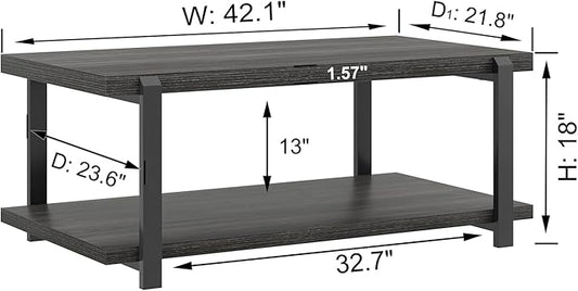 FOLUBAN Modern Coffee Table, Rustic Wood Center Table with Storage for Living Room, Dark Gray