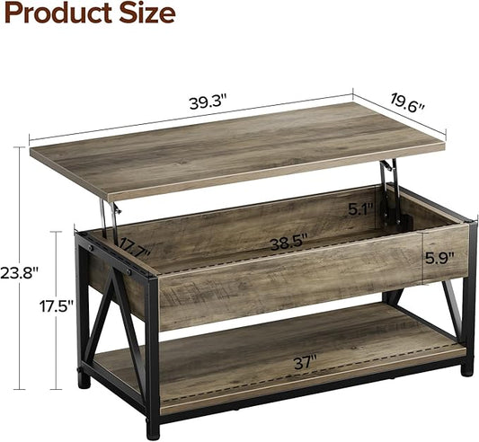Lift Top Coffee Table,Lift Coffee Table with Storage Shelf and Large Hidden Compartment for Living Room,Lifting top Coffee Tables for Small Space,Grey
