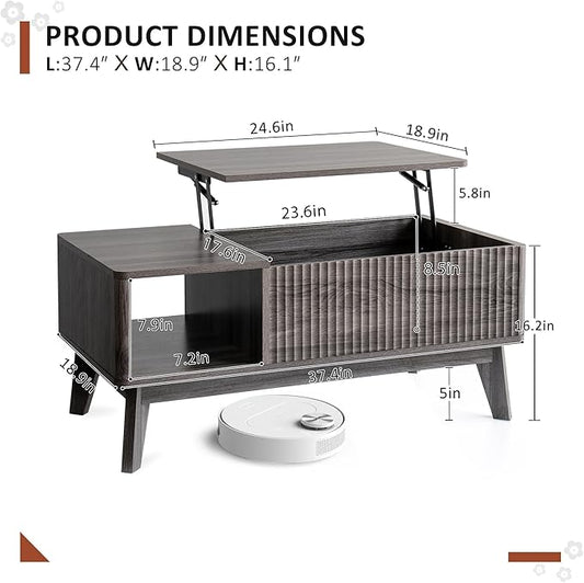 LYNCOHOME Fluted Lift Top Coffee Table with Storage,Modern Center Table for Living Room, Home Office(Grey)