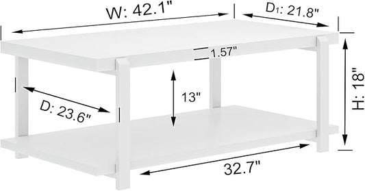 FOLUBAN White Coffee Table, Modern Rustic Wood and Metal Center Table with Storage Shelf, Rectangle Cocktail Tea Table for Living Room, 42 Inch