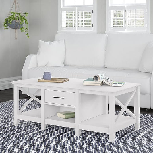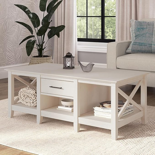 Bush Furniture Key West Coffee Table with Storage in Linen White Oak