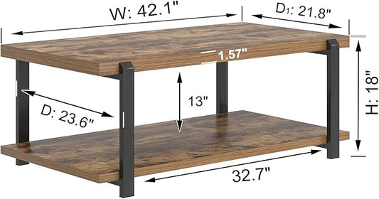 FOLUBAN Modern Coffee Table, Rustic Wood Center Table with Storage for Living Room, Industrial Rectangle 2 Tier Low Cocktail Tea Table, Rustic Brown