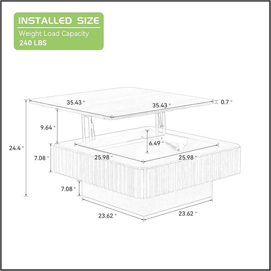 KEVINSPACE Lift Top Coffee Table Square Coffee Tables for Living Room Furniture Small CoffeeTable with Large Hidden Storage Center Table Mid Century ModernTable Rustic Ash 35.43" W x14.57-24.5" H