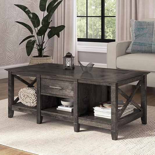 Bush Furniture Key West Coffee Table with Storage in Dark Gray Hickory