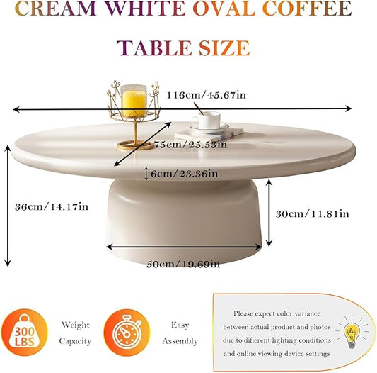 Chic Coffee Table with Smooth Fininsh & Stable Large Base, Minimalism Low Center Table for Farmhouse Living Room (J-Oval)