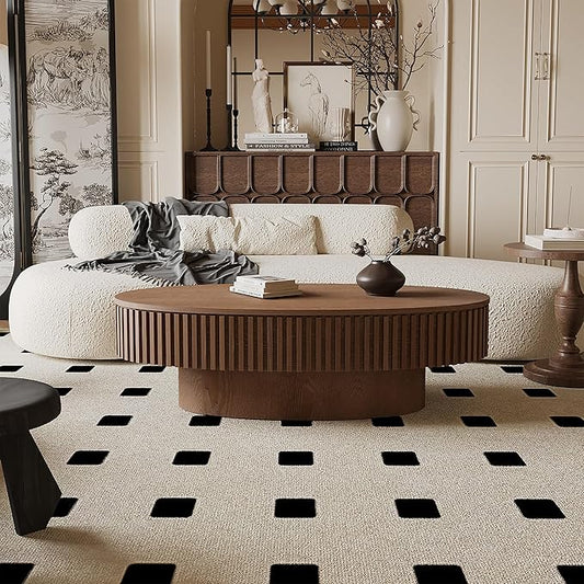 43.7 Inch Oval Drum Coffee Table, Modern Handcraft Fluted Drum Coffee Table, Wooden Round Coffee Table Center Table with Sturdy Pedestal for Living Room Apartment (Walnut)