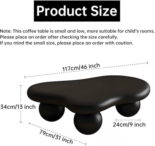 Asymmetric Cloud-Shape Coffee Table with Sturdy & Stable Cylindrical Support Legs, Stylish Irregular Home Decor Center Table (B-46in)