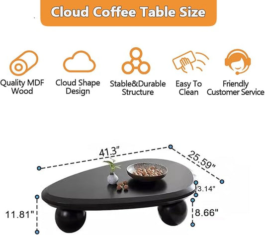 Cloud Coffee Table Modern Cute Coffee Tables Irregular Simple Tea/Center Table for Small Space End Table for Living Room, Home Office, Indoor (Black A Cloud 47.2" Wx35.4 Dx15.7 H)