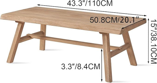 Wnutrees 43" Farmhouse Solid Wood Coffee Table, Rustic Rectangular Center Table for Living Room, Natural